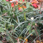 いちご畑のいちごの葉っぱが赤くなっているのを間近で