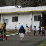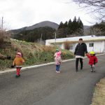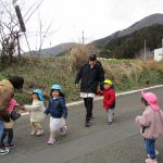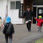 先生と手をつないで歩き、近くの林業センターまで行って