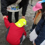 小枝を見つけて持ち歩いたりするお友達もいて、