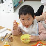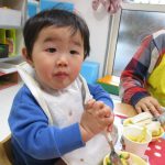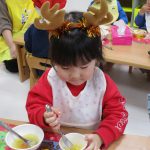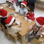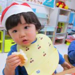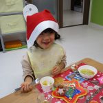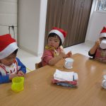 サンタ帽子を被って朝のおやつの様子です(^_^)