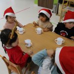 サンタさんとトナカイさん、先生達で色々な楽器を使って