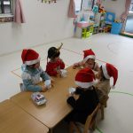 サンタさんの存在にちょっぴり緊張気味の子ども達でした💦