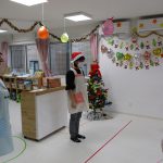 今日は朝からクリスマス会の雰囲気を出し、