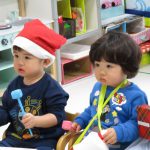 子ども達で手作り楽器を使って「赤鼻のトナカイ」を