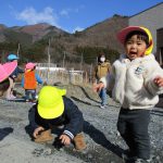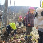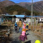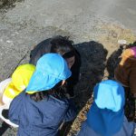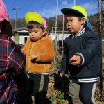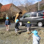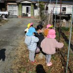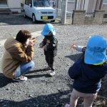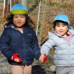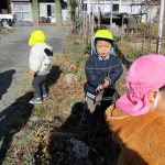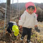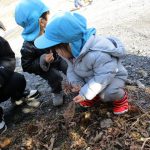 落ち葉拾いをしたり、木の枝を見つけると中に小さな穴が
