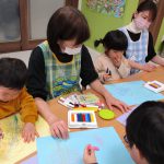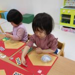 製作では絵馬にスタンピングして模様を付けました(^_^)