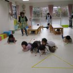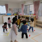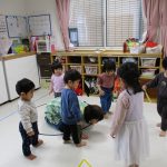 どんどん遊びが進んで行き、丸めたお花紙を床に置いて