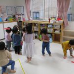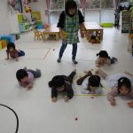 2歳児さんも1歳児さんもコツをつかんで上手に飛ばして