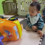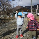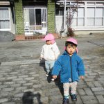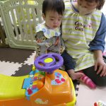 1・2歳児さんは戸外遊び、0歳児さんはお部屋で