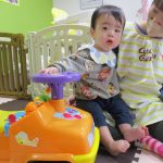 2歳児さんは先生と一緒に「かくれんぼ鬼ごっこ」を