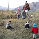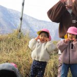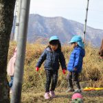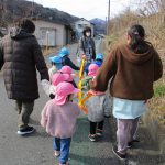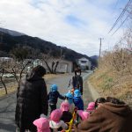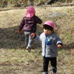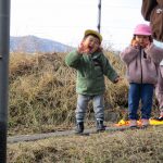 避難訓練の後は1・2歳児さんは林業センターまで
