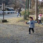 走ったり、通路から駐車場に下がる草っぱの斜面を何度も