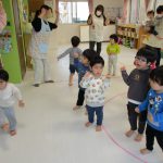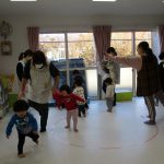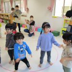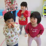 音を聞き分けて飛行機のポーズ、うさぎの真似っこ、