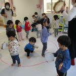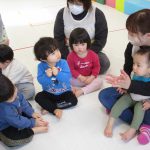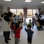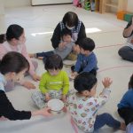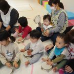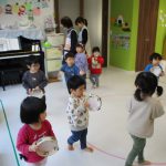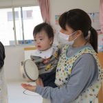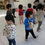 ひざ ポン~♫」の歌に合わせてタンバリンを頭、肩、膝に