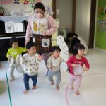 ピアノに合わせて歩き、リズムが早くなったら早歩き、