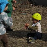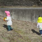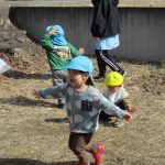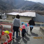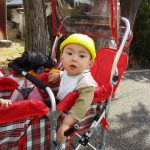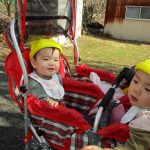 0歳児さんはお散歩カーに乗り、1・2歳児さんは