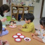 2歳児さんは3月3日のひな祭りに向けてひな人形製作に集中して取り組みました(^^)/