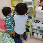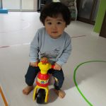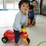 0歳児、1歳児さんはお休みのお子さんが多く、少ない人数でしたが元気にお部屋で車に乗って遊びました♫