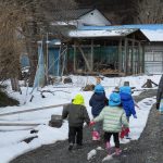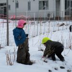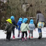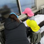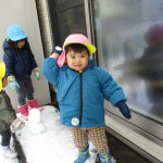 1・2歳児さんが雪遊びをしているのを窓から眺めて