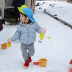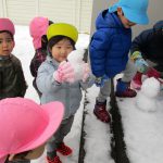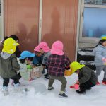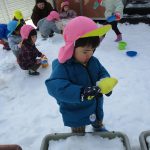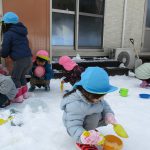 1・2歳児さんは戸外に出て雪遊びをしました!!