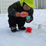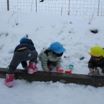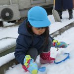 雪だるまを作ったり、雪合戦をしたり、砂場の玩具で