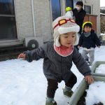 もし雪が積もったら、雪遊びを楽しみたいので、長靴やブーツ、手袋などがお家にありましたら持たせて頂ければと思います(^^)/