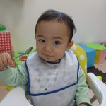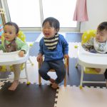 0歳児さんの朝のおやつ前の様子です。