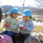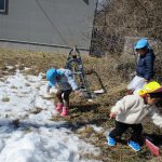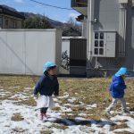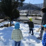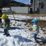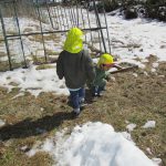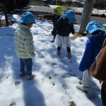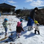雪が残っていて、みんなでザクザク踏んで感触を確かめていました(#^^#)