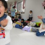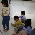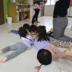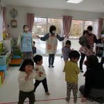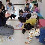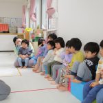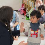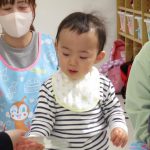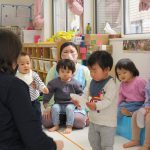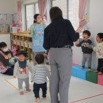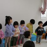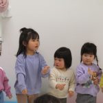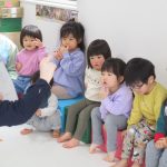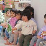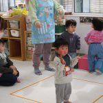 2歳児さんが0歳児さんにこっちだよ、座ろうなど優しく教えてくれましたよ(^_-)-☆