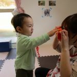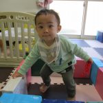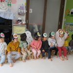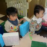 新聞紙をチョウチョウの羽にして背中に貼ってもらうと、チョウチョウになりきって両手をひらひらさせていて可愛かったです☻♡