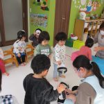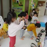 お別れ会で披露する『おべんとうバス』の劇ごっこに向けた活動です(≧▽≦)
