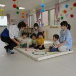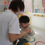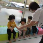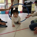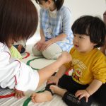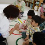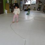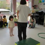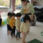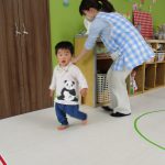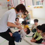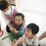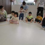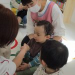 1歳児さんも先生に手伝ってもらいながら挑戦しましたよ。