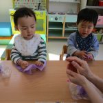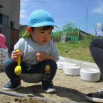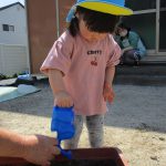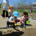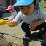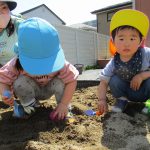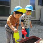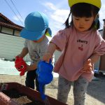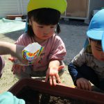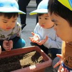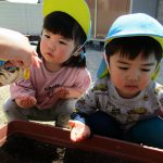 2歳児さんラディッシュ(二十日大根)の種まきをしましたよ!