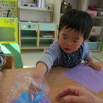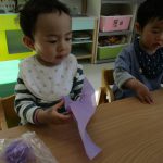 1歳児さんはこいのぼり製作に取り組みました!🎏