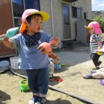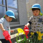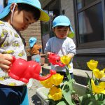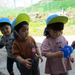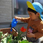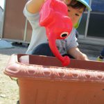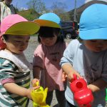 最後にぞうさんジョーロで水をかけて「大きくなぁれ!」