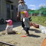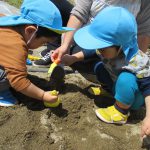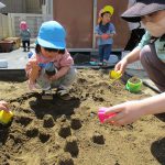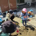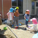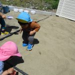 製作をした1歳児さんも合流して、砂場遊びをしました!