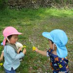2歳児さんはタンポポどーぞ!と1歳児さんに差し出してくれるのです(^O^)