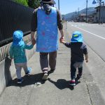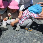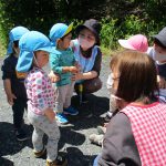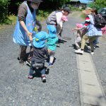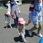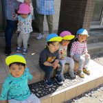 今日は外に出てすぐ、園外保育中、地震を想定した
