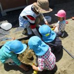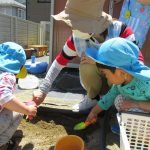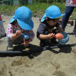 昨日の雨で砂場の砂が濡れていて、型抜きしやすい砂でした!