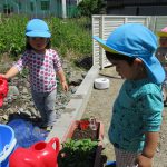 今日は1歳児さんも水やりの手伝いをしてくれています(*’▽’)