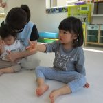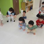 ゆーっくり叩くところから速くたたくなど、先生の動きを見ながら真似ています(*^-^*)