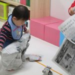 0歳児さんも新聞紙遊び、楽しんでいました(≧▽≦)