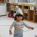 まずは新聞紙での遊び方について、先生が新聞紙を破いたり