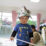 剣も作ってもらって、新聞紙怪獣と戦いごっこを楽しんで