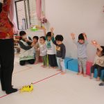 音楽に合わせて体を動かしたり、カードを使ったり