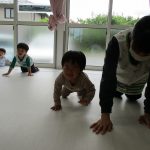 他のお友達はジャンプしながら進んだり、ハイハイで