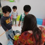 英語教室の後、外遊びをしようと準備していると