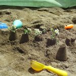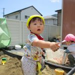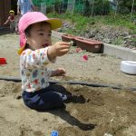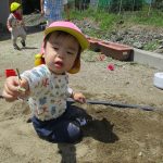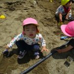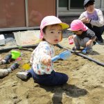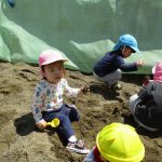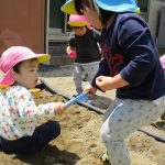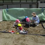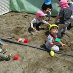 砂遊びの他に好きな遊びを楽しむお友達の姿も