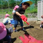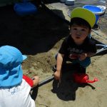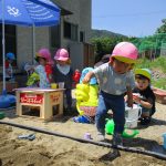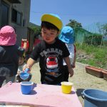 日中は砂場で水も使って遊びました(^_^)