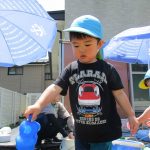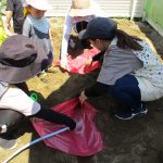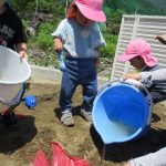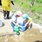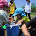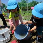 子ども達も手伝ってくれてバケツをひっくり返して